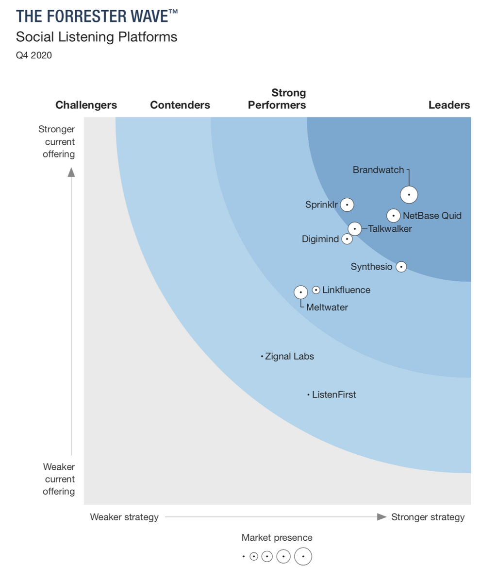 The Forrester Wave is a guide for buyers considering purchasing a social listening solution. Forrester analysts follow a publicly available methodology, which they apply consistently across all participating vendors. It is widely acknowledged as the best independent guide for the industry.