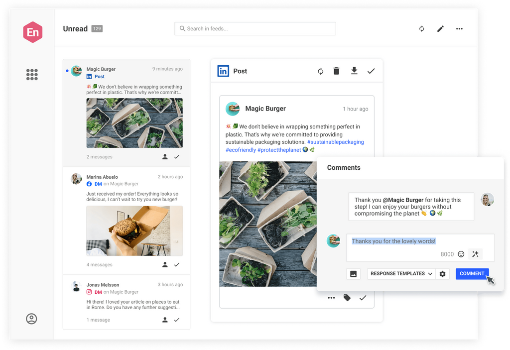 Machen Sie Community Management und Kundensupport stressfrei. Binden Sie Kund:innen und Interessierte mit einer einzigen Social Inbox für alle Ihre Netzwerke ein.