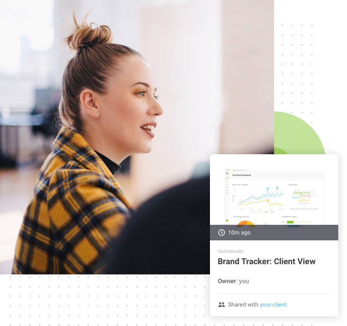 Configura informes personalizados e ilimitados que muestren el rendimiento de los canales de tus clientes y que puedas compartir directamente con ellos. Cuenta historias basadas en los datos y que revelen esos insights profundos sobre los consumidores. También, configura alertas inteligentes para garantizar que eres el primero en informar a tus clientes si algo sucede.