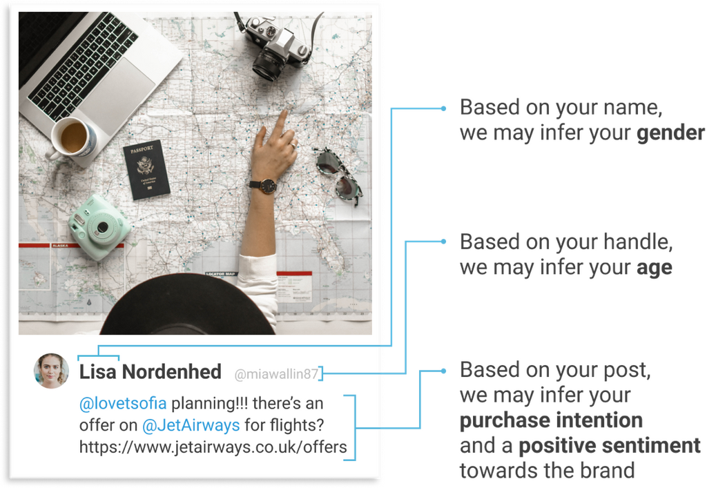 When we infer data about you, we do so automatically, based on each individual post. We do not look at multiple posts in combination, and our algorithms analyse each of your posts individually.